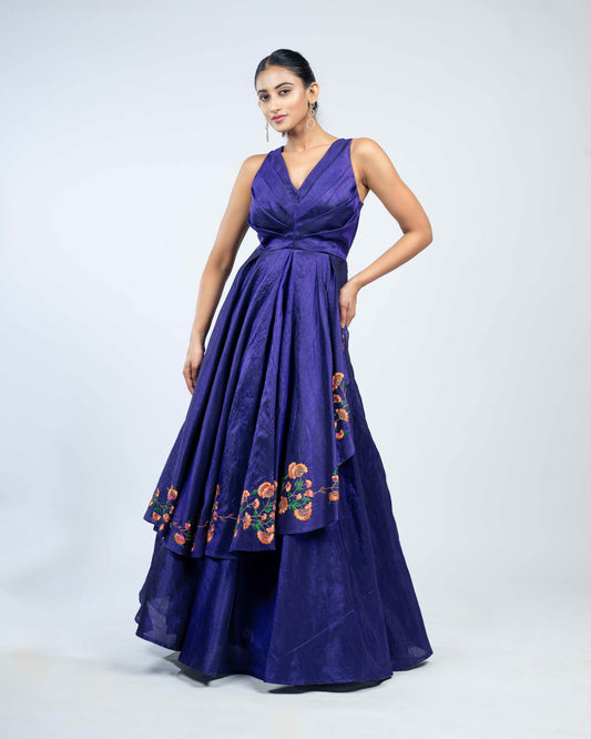 Royal Purple Sleeveless Anarkali Gown with Floral Hem Embroidery
